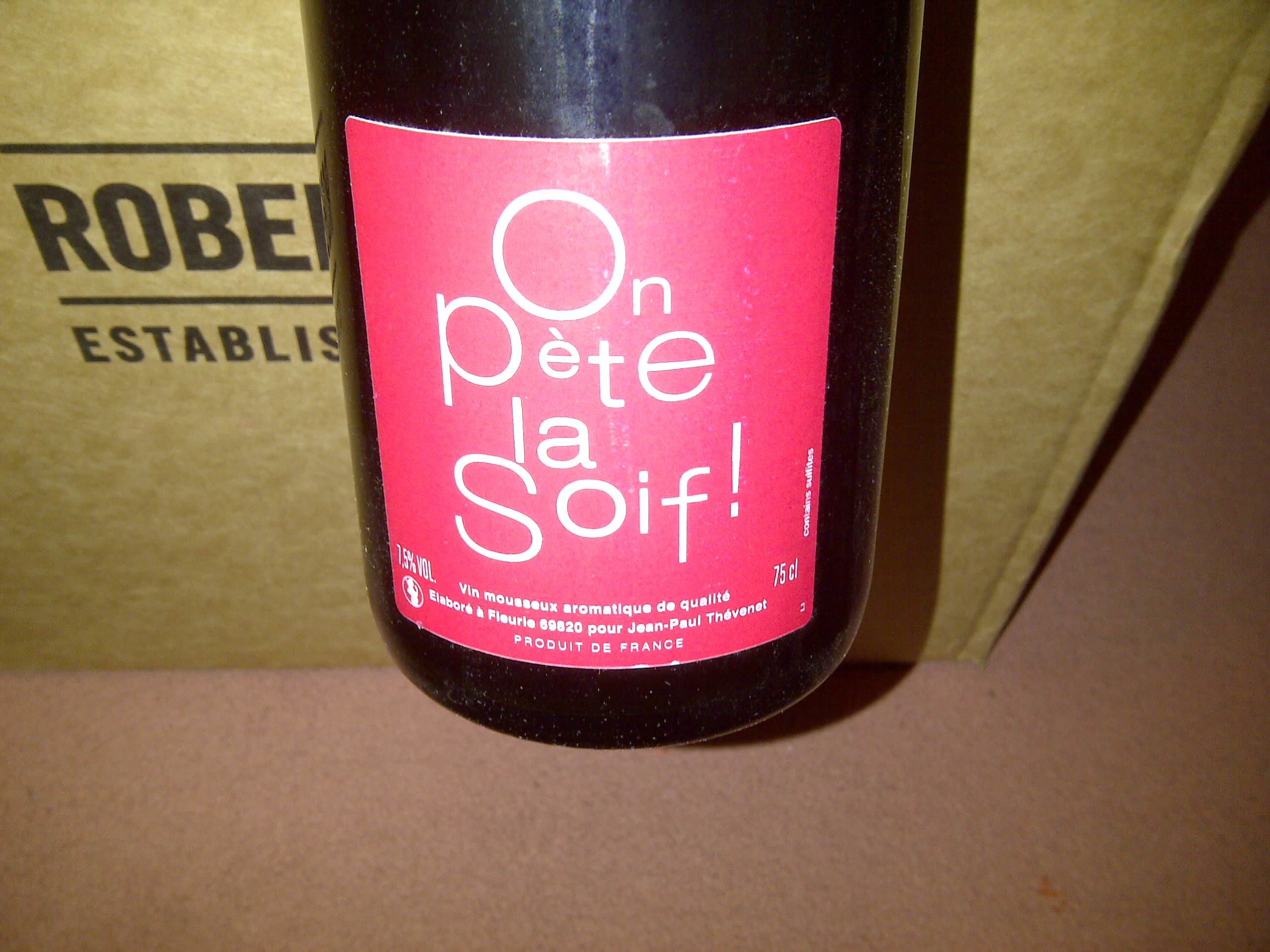 On Pète la Soif – Jean-Paul Thévenet (Fleurie): This comes with a proper mushroom cork/wire but J-P describes it as a “vin mousseux aromatique de qualité” and it weighs in at just 7.5% alc. Occasionally available from Roberson in London.