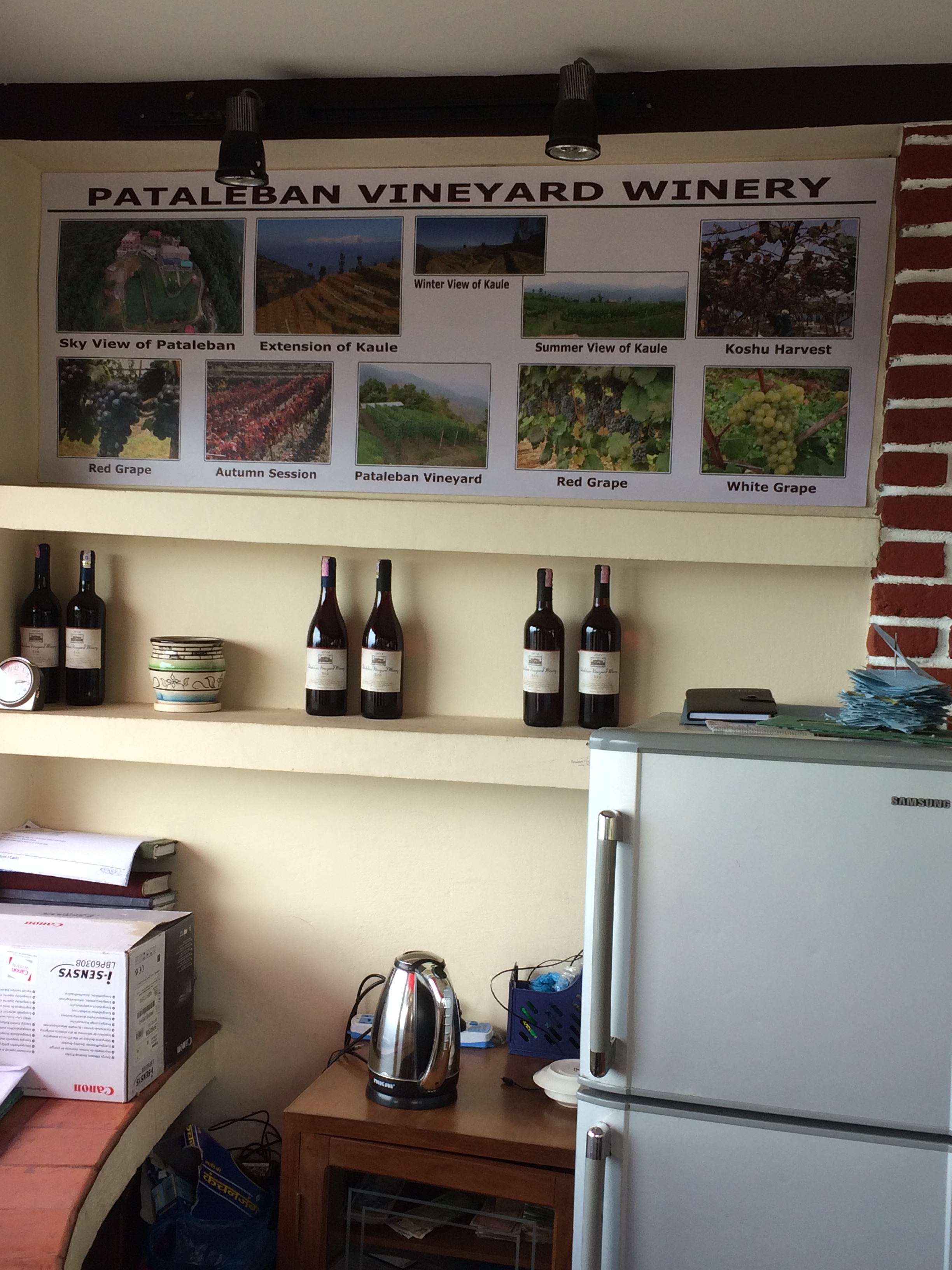 When we visited, the white and pink were sold out, but the red proved to be both palatable and interesting. All the winemaking equipment has to be imported. I think much comes from Germany. The wine is clearly well made, the grape variety being Khainori (a cross between Pinot Noir and Khaiji) grown in the estate’s Kaule vineyard. It has that kind of hybrid flavour you get so often with indigenous reds in Japan, a strawberry/raspberry fruit with a kind of foxy/woody note on the finish. It doesn’t lack balanced acidity and is refreshing and quite light. It costs 1,700Rs, a princely sum in Nepal, yet equating to about £11-£12. Vastly cheaper than an imported bottle of cheap, branded Chilean Cabernet from an air conditioned wine room in a smart Durbar Marg restaurant, and much more interesting. The 2014 we tried, and bought, has 12% alcohol.