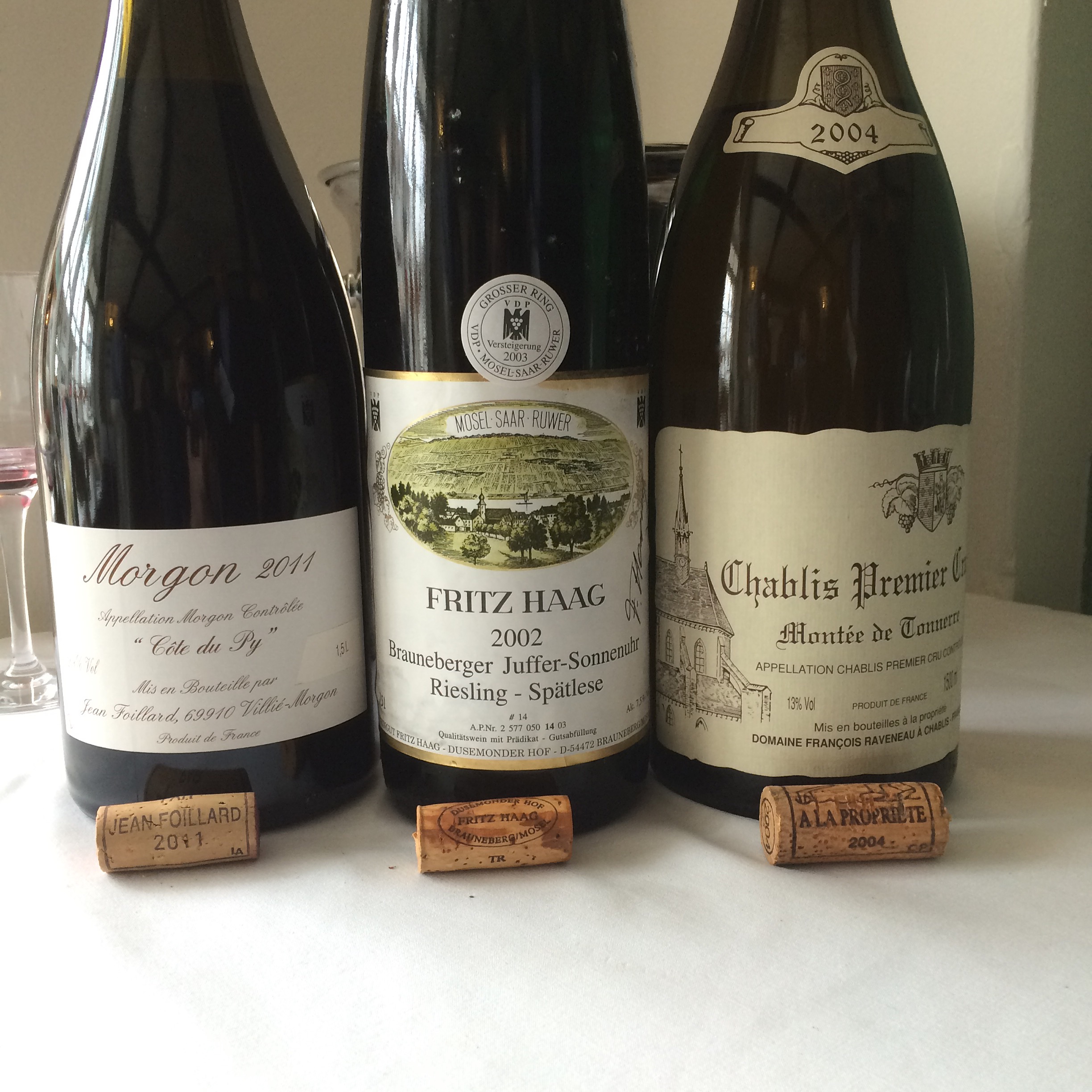 Celebratory Magnums – Solent Cellar stock an increasingly decent number of magnums and to finish off, we were all treated to three gems: Raveneau Chablis 1er Cru, Montée de Tonnerre 2004, Fritz Haag Brauneburger-Juffer Sonnenuhr Spätlese, Mosel 2002 (Grosser Ring Auction bottling), and Foillard Morgon “Cote du Py” 2011. All of them were stunning. The Chablis and the Morgon clearly prove how superior the magnum format is (or, as a friend said in another place, “how effortlessly superior”. The Haag perhaps shaved it for wine of the day, it being no ordinary bottling, but one of the Auction versions so prized by German Wine aficionados. It was also the one wine of the three I had not previously tried in mere mortal bottle format.