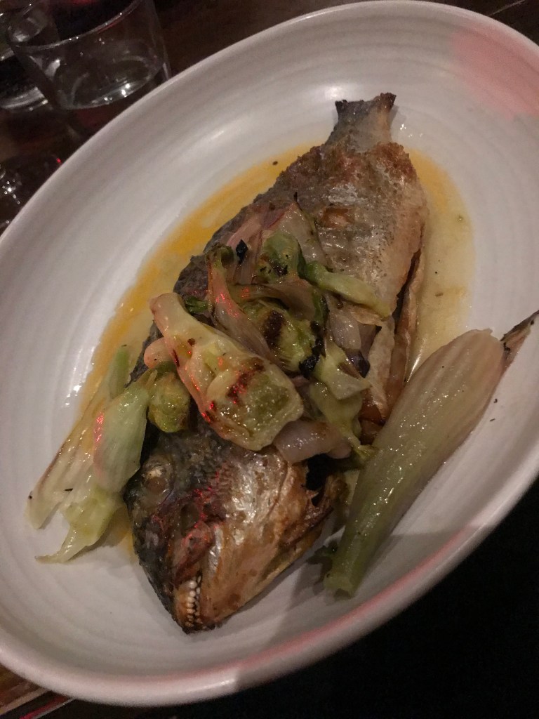 The six of us ranged from vegan and vegetarian to carnivore, and Plateau is well able to cope with any requirements. It’s the sort of place where the chef will tweak a vegetarian dish to make it vegan without any suggestion that it’s awkward, and the result is always very good. Of the three sharing small plates we began with, based on shallots, butternut squash, and carrot, it was the last of these which had been tweaked to vegan that was actually my favourite.