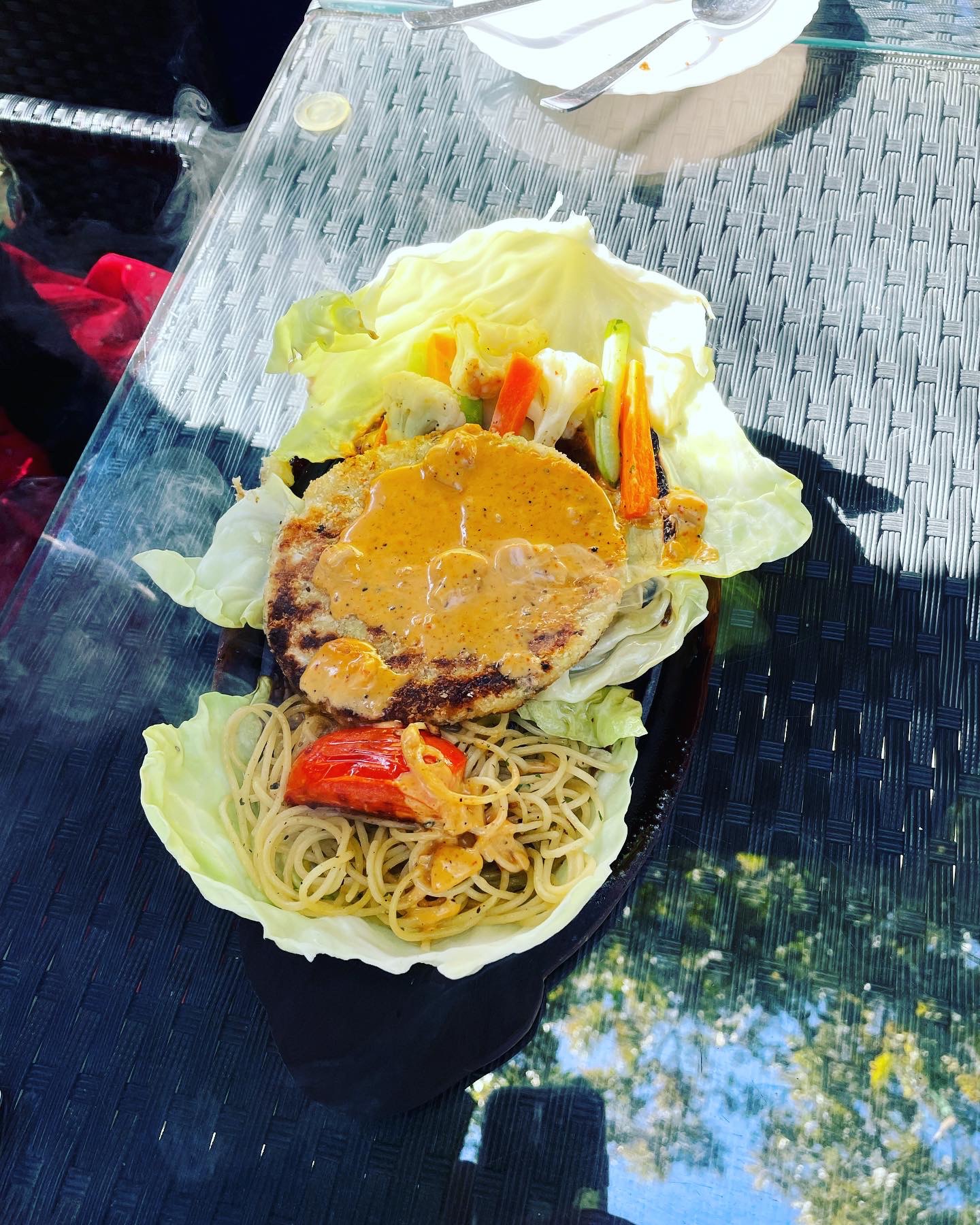 The dishes above are at C-YA Vegan (@amruthaz_vegan_food_service), certainly Kathmandu’s finest fully vegan restaurant, in Jhamsikhel. There really is no meat in the dishes above.