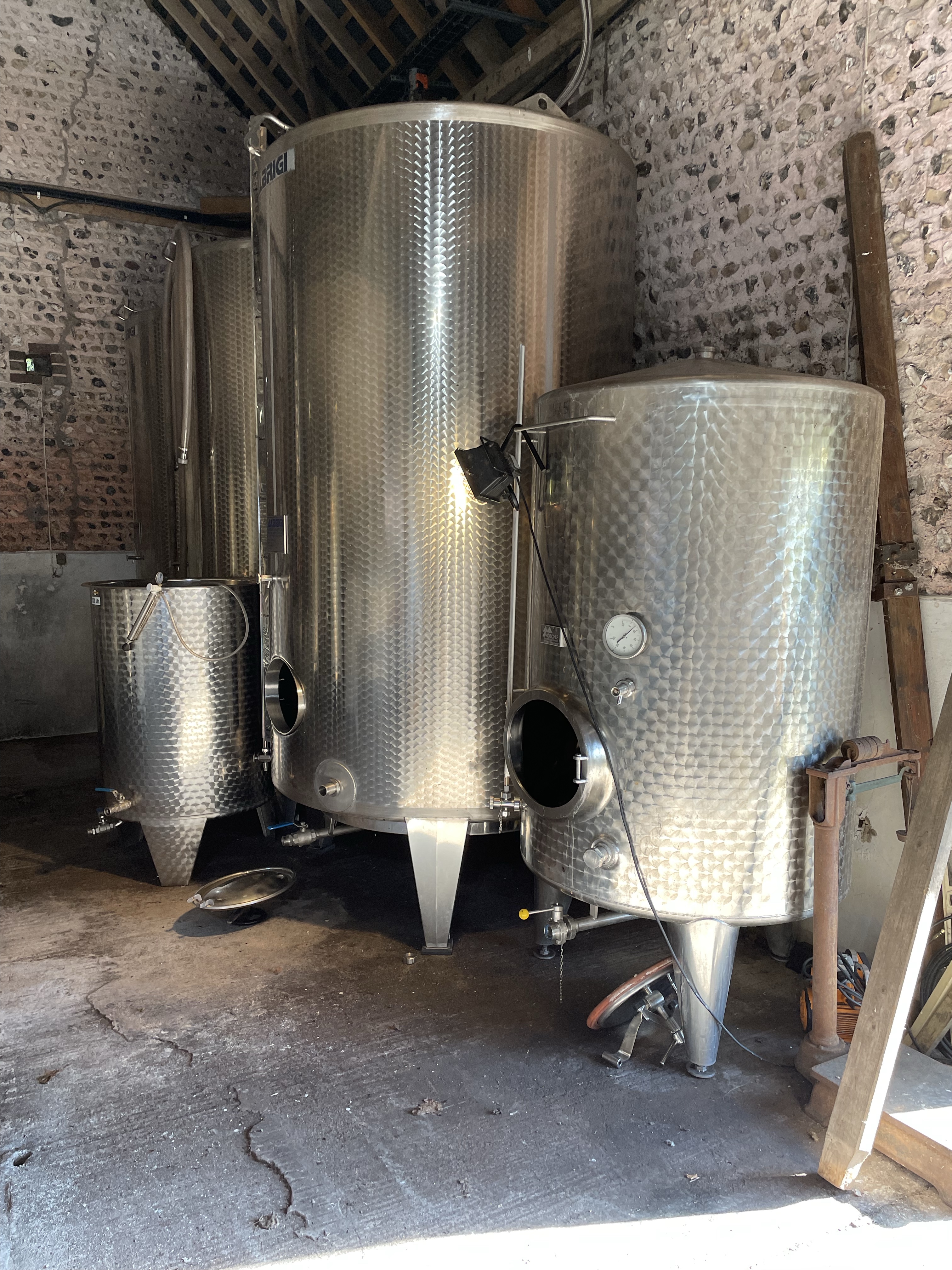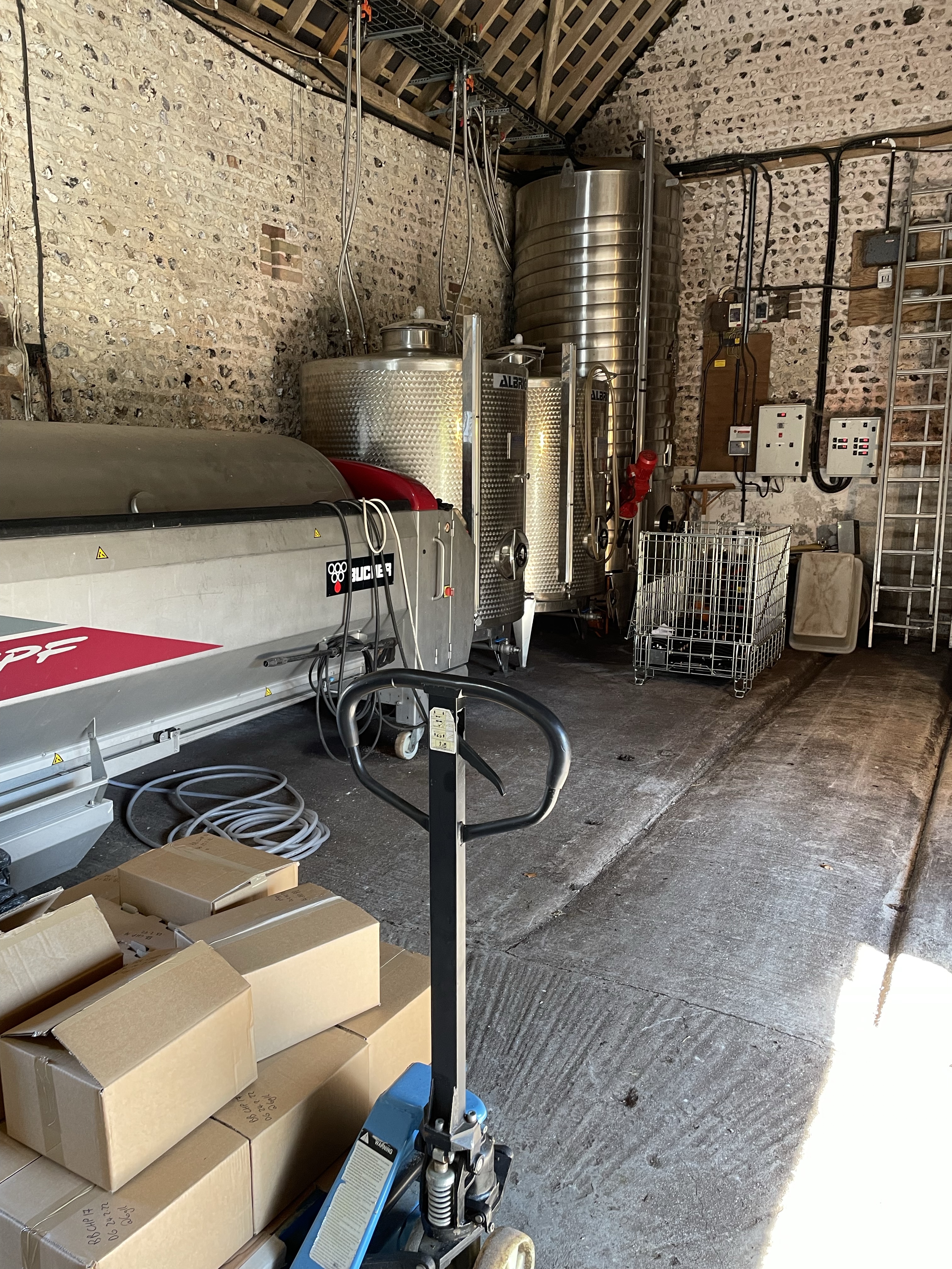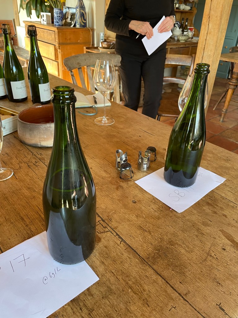 We tasted five wines before vineyard helper Louisa gave us a tour of the vines, winery and cellar. We began with two wines from the next release, a pair just disgorged from the 2017 vintage, therefore both having had around four years on lees in bottle. They do not yet have official cuvée names and had literally come back from disgorgement within a couple of days. Peter makes all the wines at Breaky Bottom, including both fermentations and ageing, but riddling and disgorgement are carried out off-site, at either Wiston, by Dermot Sugrue, or at Ridgeview, by Simon Roberts.