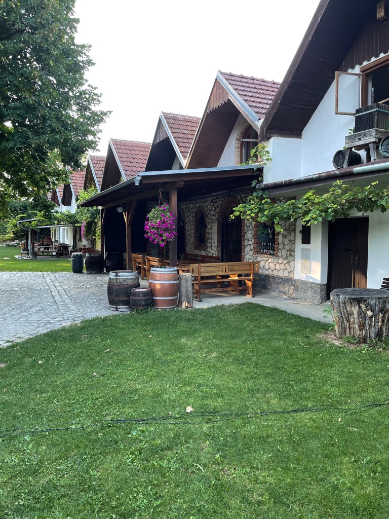 We left after a further half an hour of barrel samples, having risen at 5am to get out to Czechia. The youngsters stayed on for a bit of sabre work in the lower cellar, followed by steaks I believe, though to be fair they were remarkably quiet when they staggered in later. We had emerged from the cellars to see half the village watching a film on a big screen outside, chairs arranged beneath the trees. We strolled downhill, our way illuminated by a large moon, our conversation half drowned-out by the cicadas. We had no hangover the next morning, rising early to head off to our first visit of Friday.