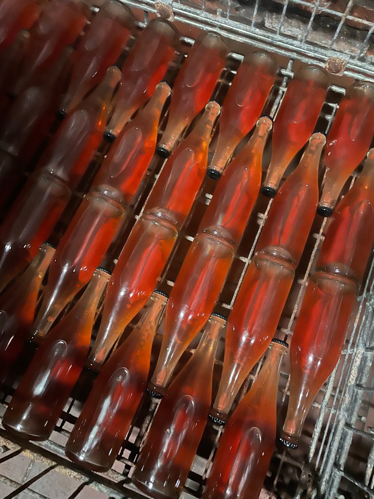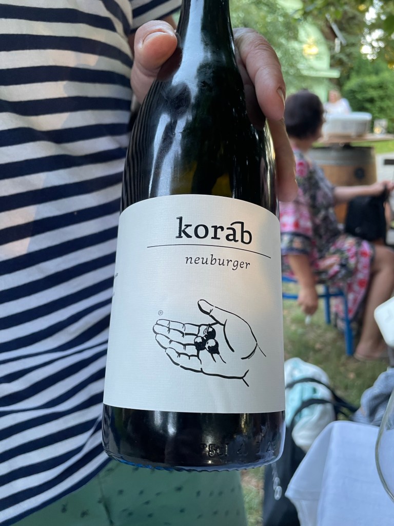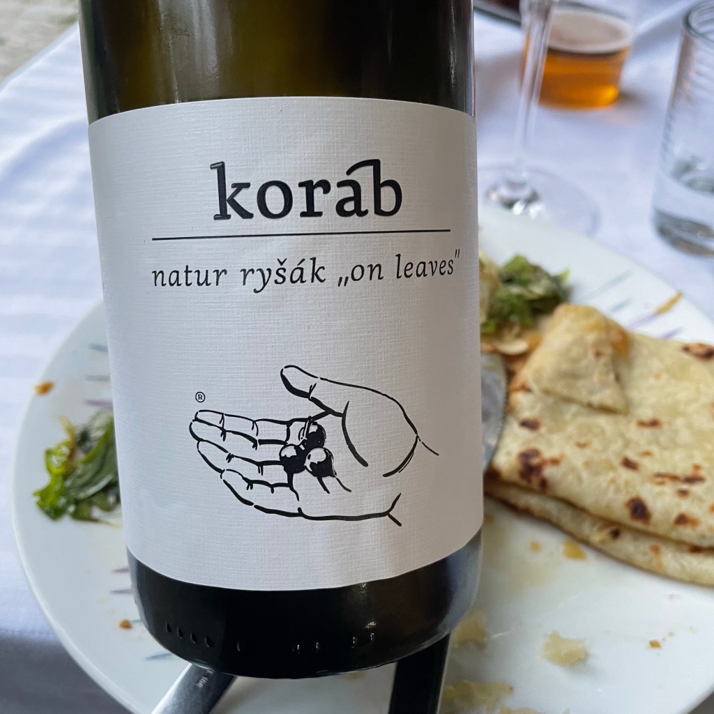 Neuburger is always nice to taste and Petr’s version was a highlight, along with his Natur Ryšák on Leaves (“Ryšák” is the name for traditional field blends, made like a gemischter satz, in these parts), and Orange on Leaves, a petnat I’ve drunk a few times made from Grüner Veltliner and Welschriesling. The Koráb wines described as “on leaves” see the vine leaves, or occasionally herbs, dried, made into a powder and used as a natural fining agent to take out the larger solid matter.