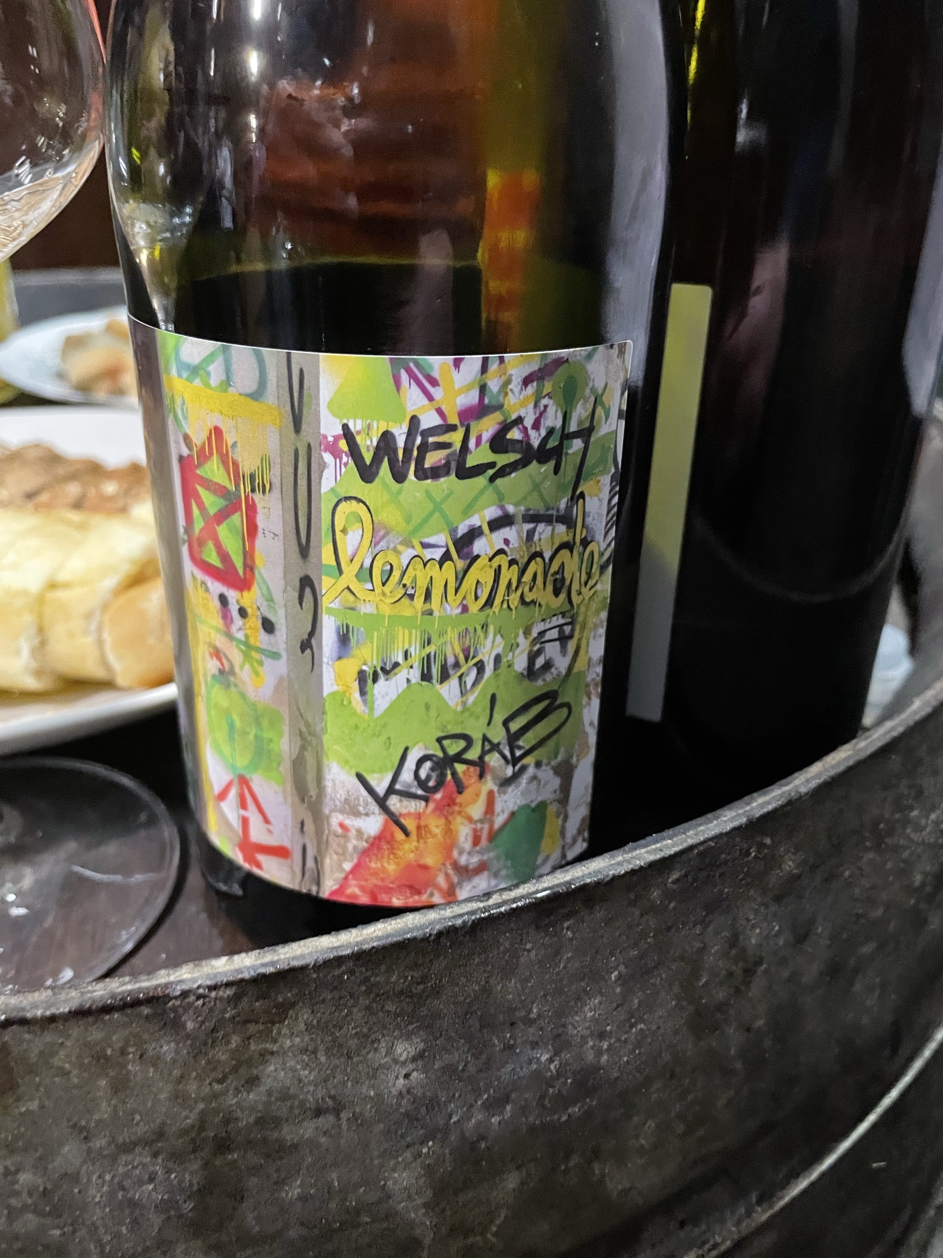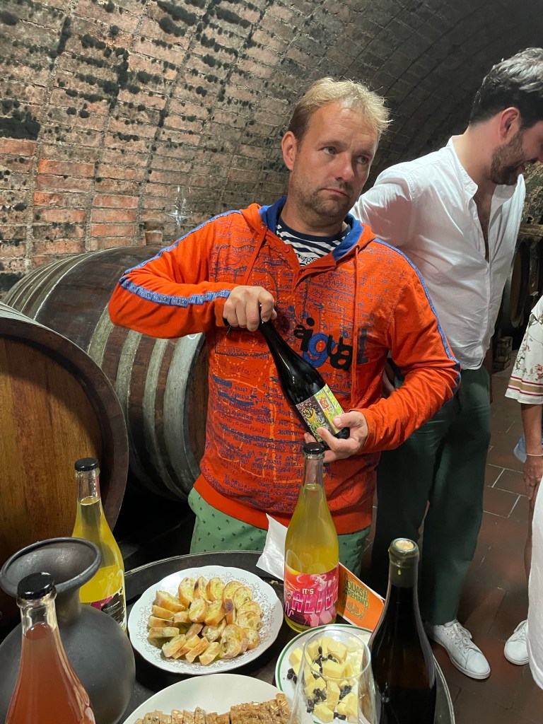 Petr went on into the night opening petnats and still wines. I still don’t know another producer who makes such a variety of petnats, new wines appearing every year. They are all different, which is part of the excitement, and they are all refreshing. None more so than the Lemonade (Welschriesling) which was one of many Petr popped for us. Frankly, if you like petnat you can’t go wrong with any of them. Even if the wines were not brilliant, which they are, they would be worth buying for the labels. Petr knows how to push the right buttons for his market for this side of his range, retaining a modern yet less out-there look for his still wines.
