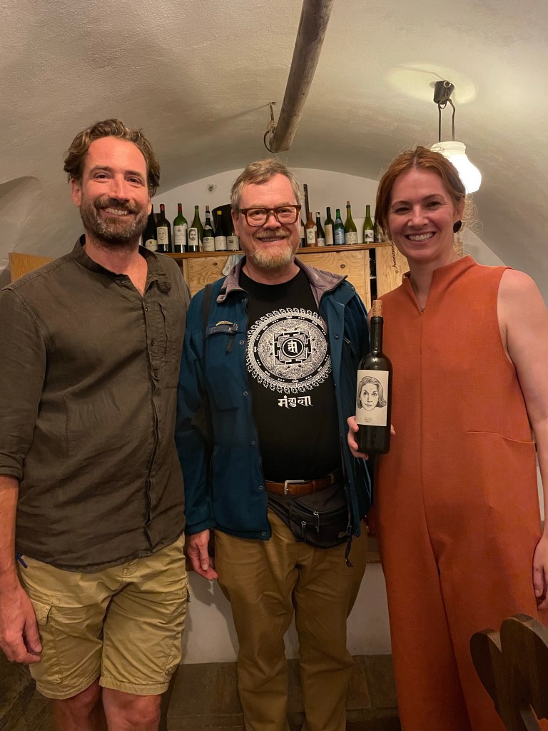 Mechtild 2018 – This is the white wine from the “grandparents” generation. Mechtild is the Gut Oggau family matriarch. The grapes come from the oldest Grüner Veltliner they farm, and this is a world class wine by anyone’s reckoning. It commands a price which is now beyond the means of your average wine writer, but hey, I was privileged to taste half a glass. The wine challenges preconceptions but in a good way. Sixty-year-old vines on limestone give up grapes then fermented on stems and skins. The colour is sandy, the aromatics herbal with a faint floral top note. The palate is frankly complex and complicated. The wine is serious…and seriously good.