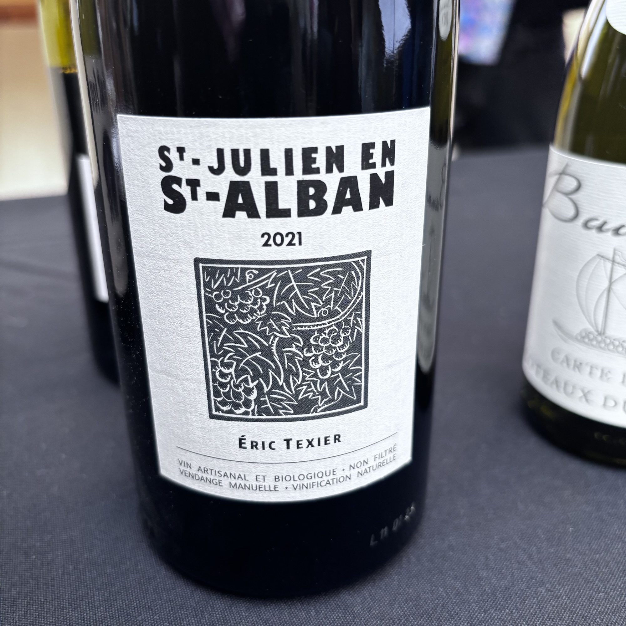 I began here by allowing Andrew to pour me two wines from Eric Texier. I’m sure he’s familiar to many. Matt Walls, in his 2021 Wines of the Rhône, says “It’s hard to think of a more creative or experimental vigneron than former nuclear engineer Eric Texier”. He is credited with putting the appellation, or village if you wish, of Brézème back on the map, though Jean-Marie Lombard should get some credit. He is certainly the leading producer of Brézème, and his minimalist natural wines can be very special.