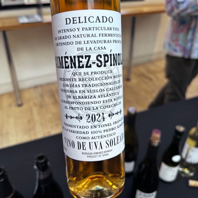 Three delicious wines sitting somewhere in the dessert wine spectrum next, beginning with Bodegas Ximénez-Spinola and their Delicado 2024. This Bodega is focused just on PX, and has been doing so since 1729. Their vineyards are in the Jerez triangle off the famous chalk Albariza soils. The grapes for this cuvée are dried in the sun for 21 days, on mats. This is done between the vines, so that the bunches see both light and shade as the sun moves round. In the winery the grapes only receive a gentle pressing. The result is rich with orange peel, apricot and concentrated raisined, fruit. There is no fortification and alcohol is just 13%. £28 for 50cl.