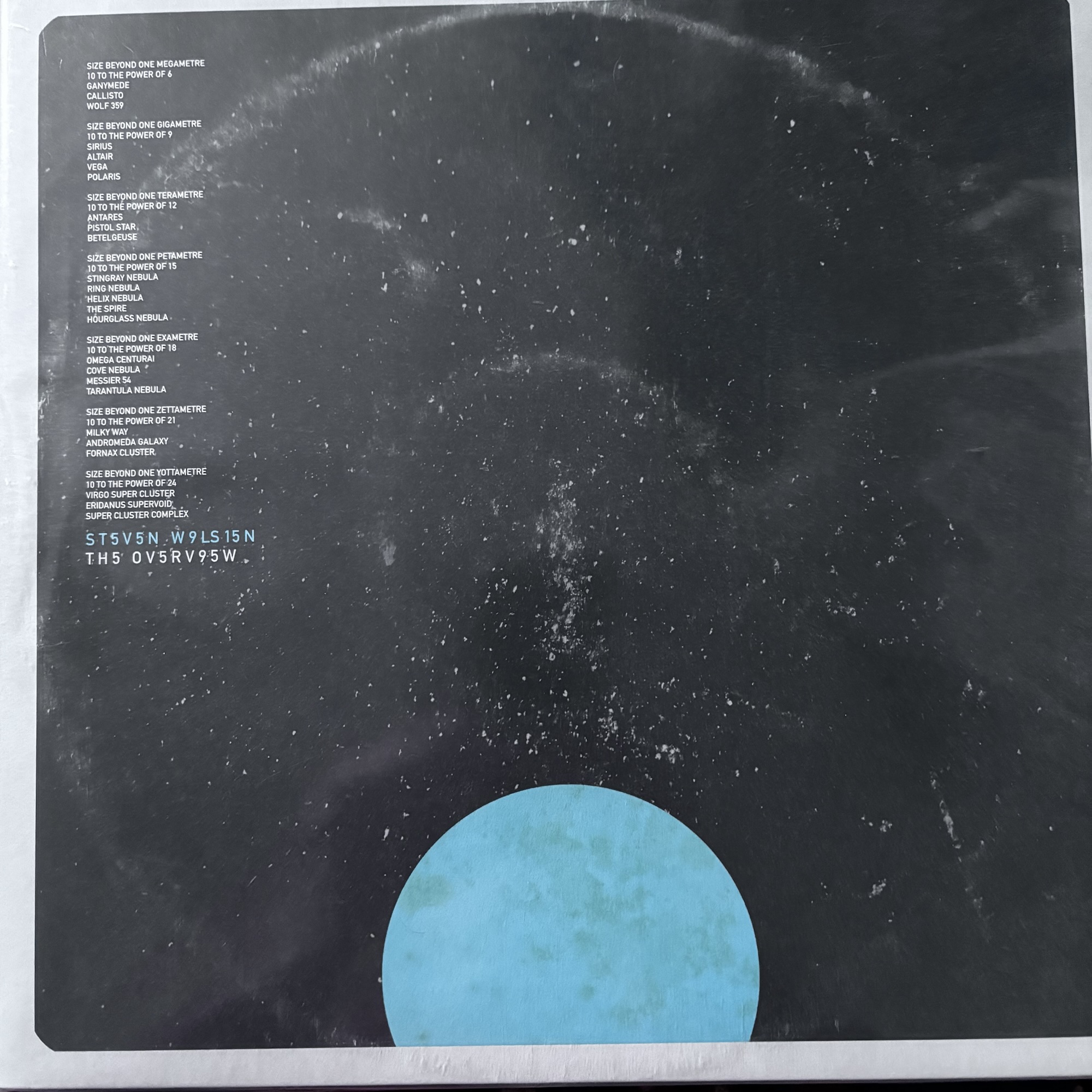 A complete change for my second choice, The Overview by Steven Wilson (Fiction/Virgin Records). Just two tracks (one per side), pensive, relaxing, spacey, it captures something, but you need to listen to see what you feel that is. Kind of Prog, but not in the sense some would use that term. That said, if Dark Side of the Moon had never been made, people might be talking more about this album.
