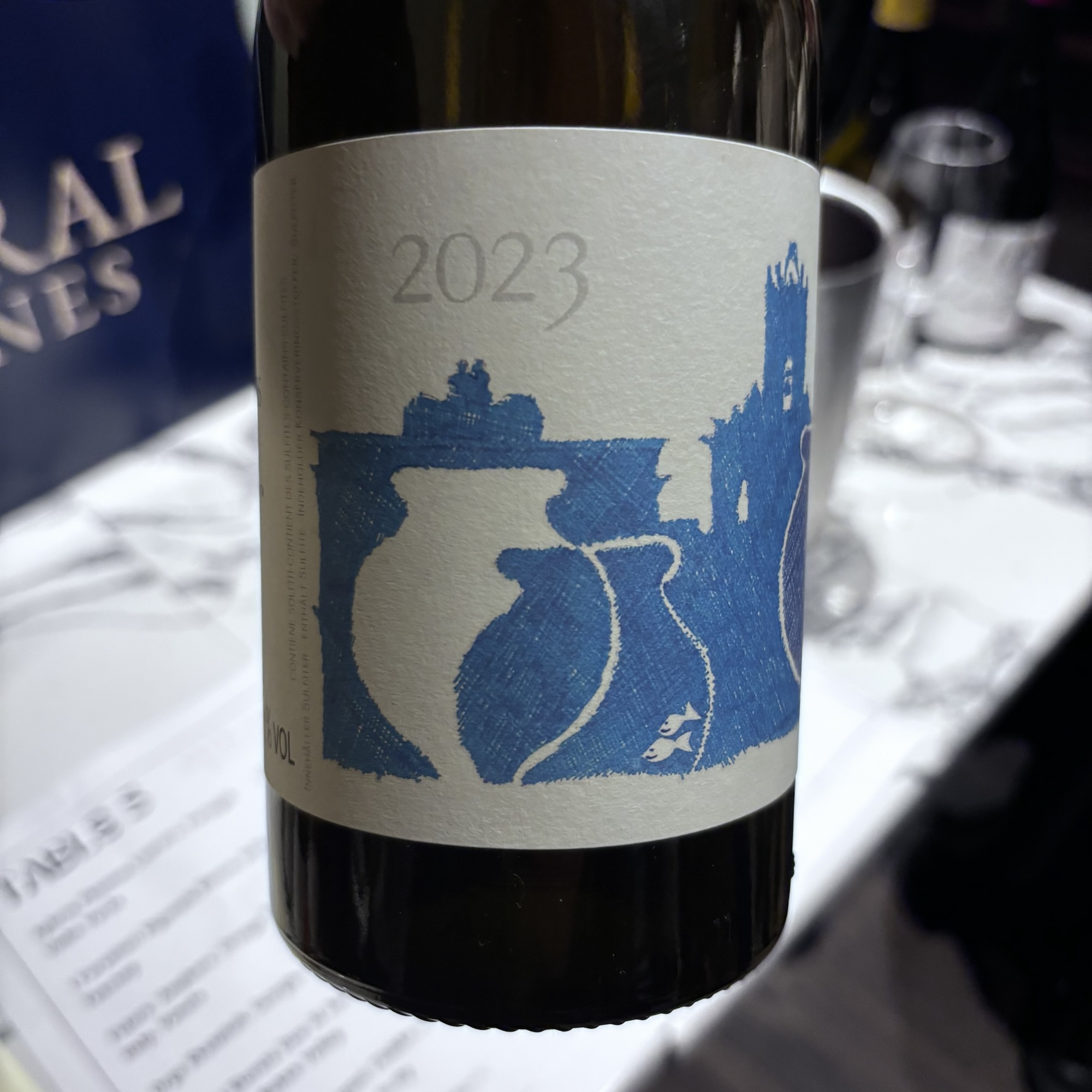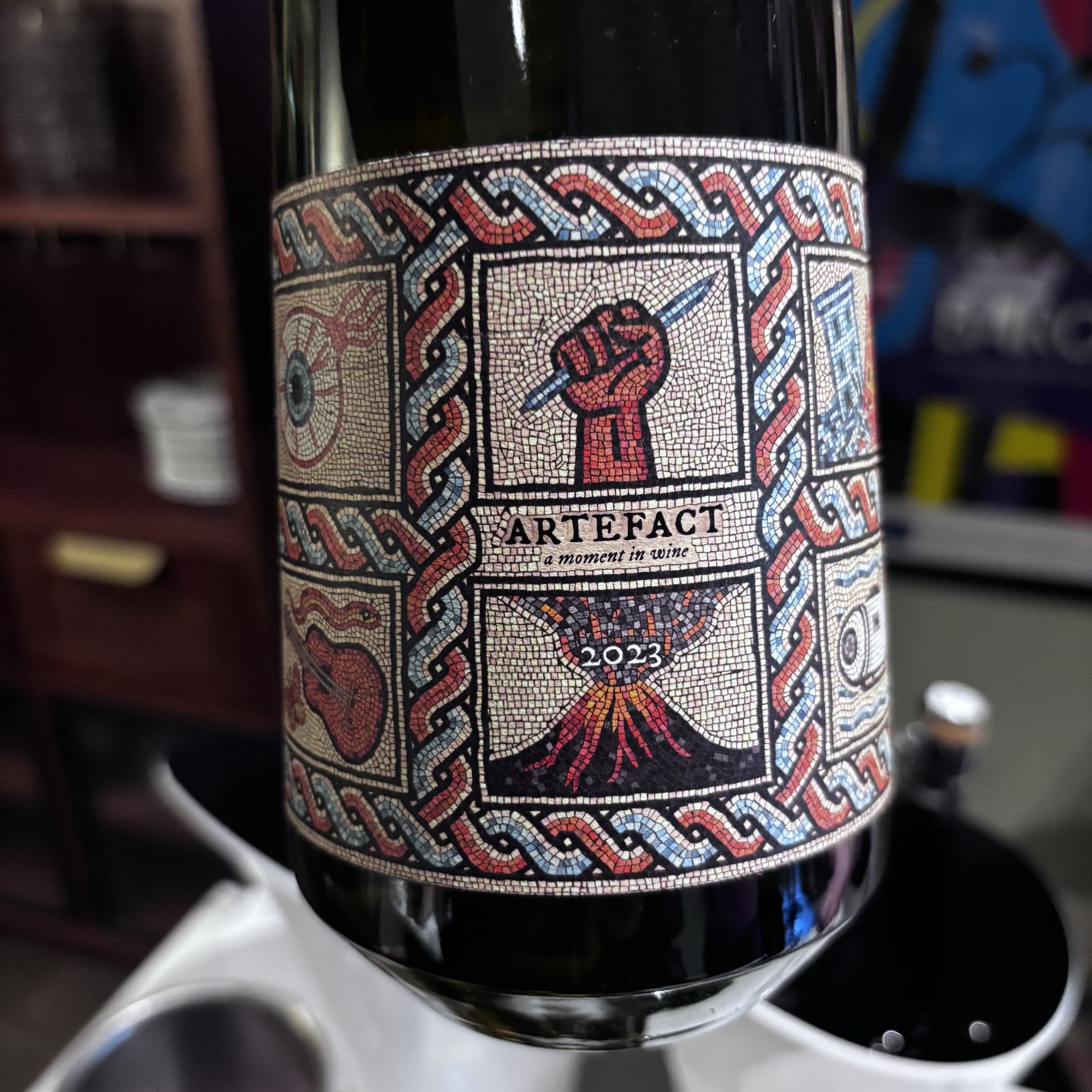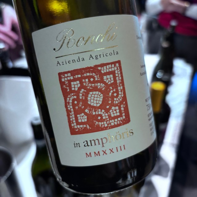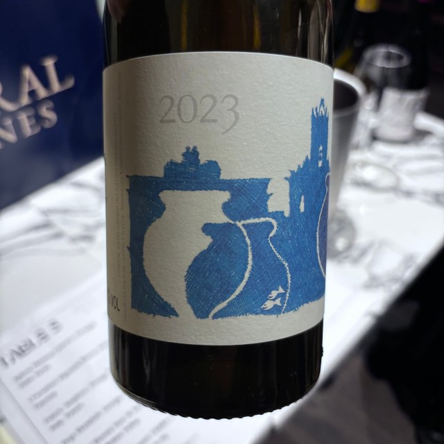 This is the third vintage of Artefact I’ve tasted. It’s a Bacchus, grapes harvested in October ’23, fermented on skins in large Tuscan amphorae. There it stays, on lees, for eleven months [so says the blub I read], or 18 months according to Greg Turner whilst pouring the wine.